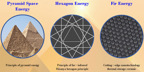 It is a pyranya ceramic regenerative ceramic energy made from the hexagonal energy and advanced technology of Good Life (NT=Nano-technique) that maximizes the effect of far-infrared radiation through the principle of space energy of the Pyramid, a force which is created from the cross section of a triangle of a pyramid and color change due to temperature change.